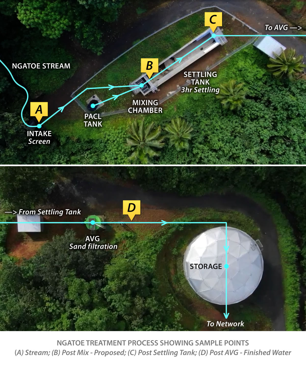 Above: Ngatoe Treatment Process Showing Approximate Water Sampling Points