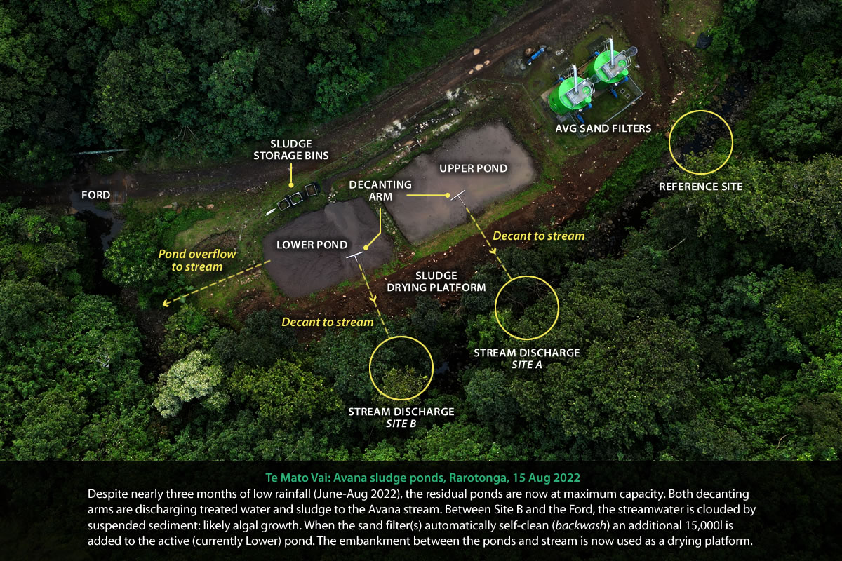 The Te Mato Vai Project Management Unit (operated by New Zealand firm GHD), has sought to reassure intake Landowners that the system is ‘safe’. That the onsite storage ponds are sufficiently-sized to contain residuals; and that stream discharge will not impact stream health.